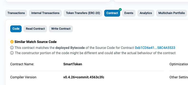 - Contract Name: The name of the smart contract as given by the project (ex. USDT, Pair, LiquidityFactory)